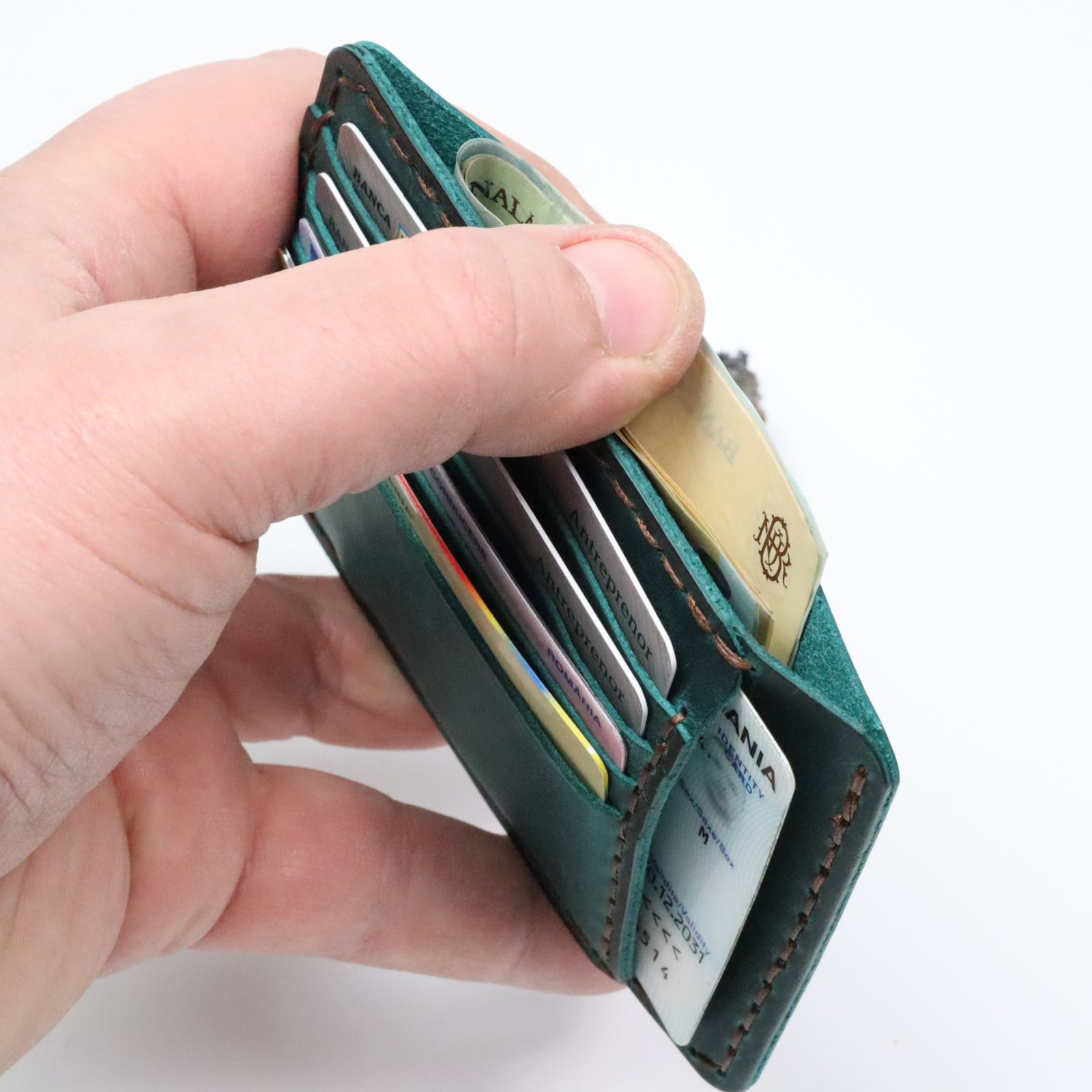Portcard Minimalist din Piele Naturală , Duma, Turcoaz