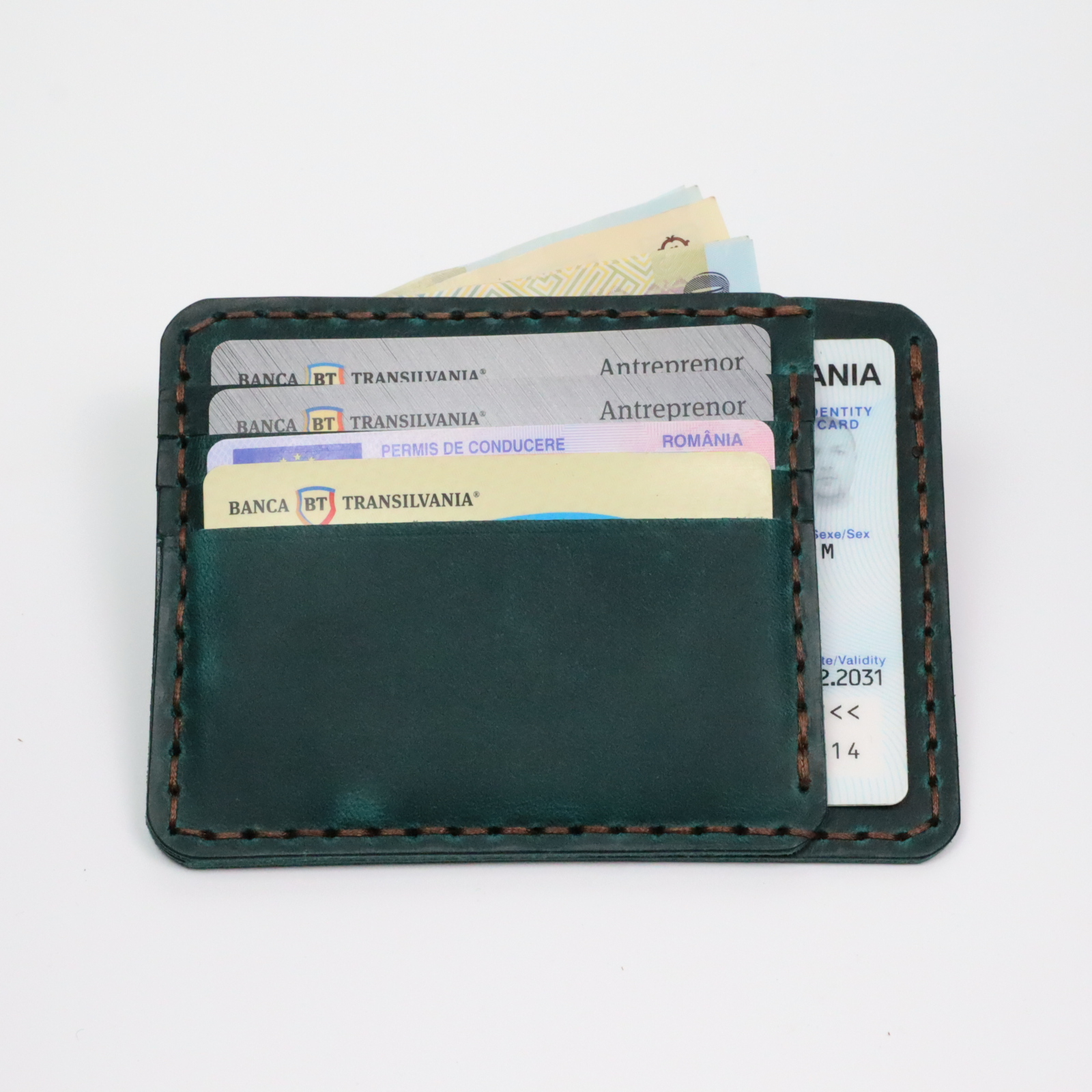 Design Inteligent: Deși minimalist, este surprinzător de încăpător pentru cardurile esențiale și câteva bancnote.