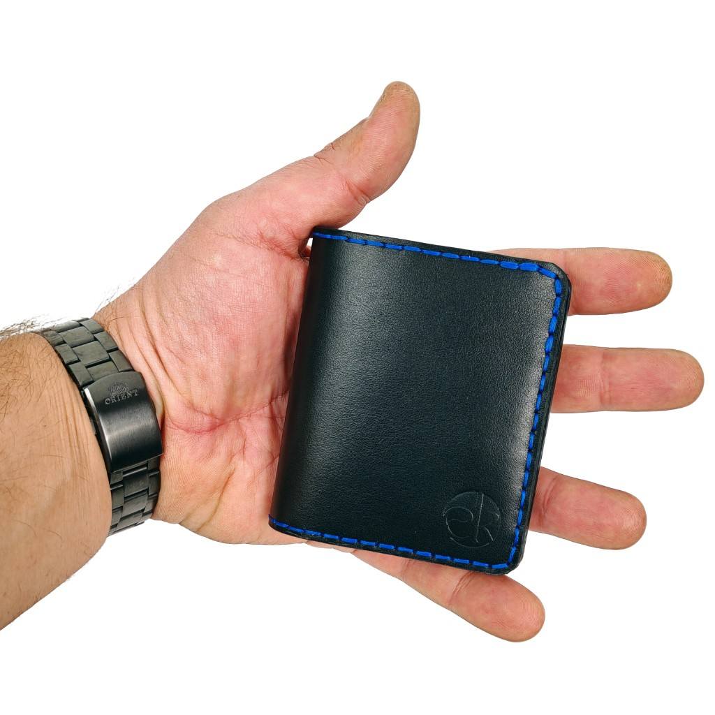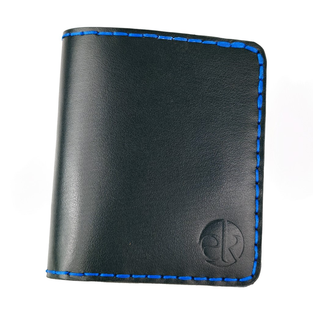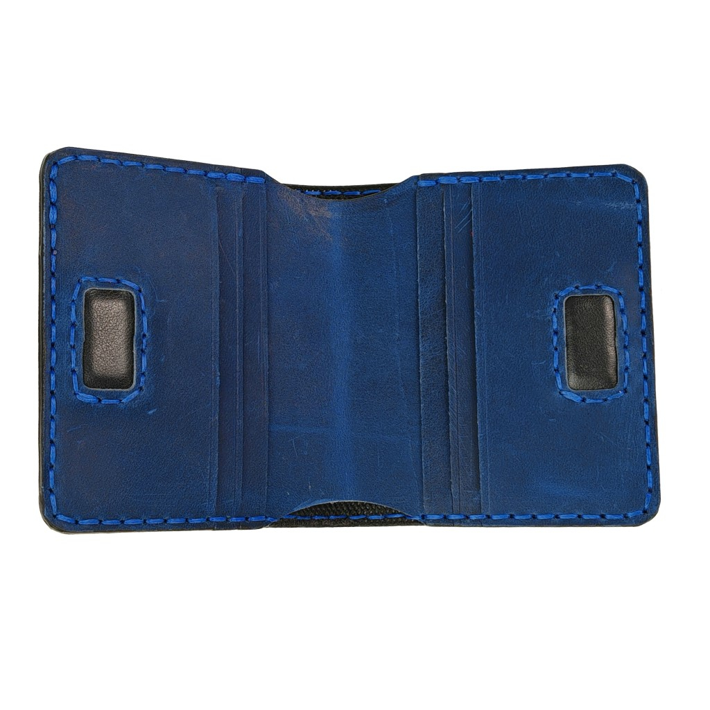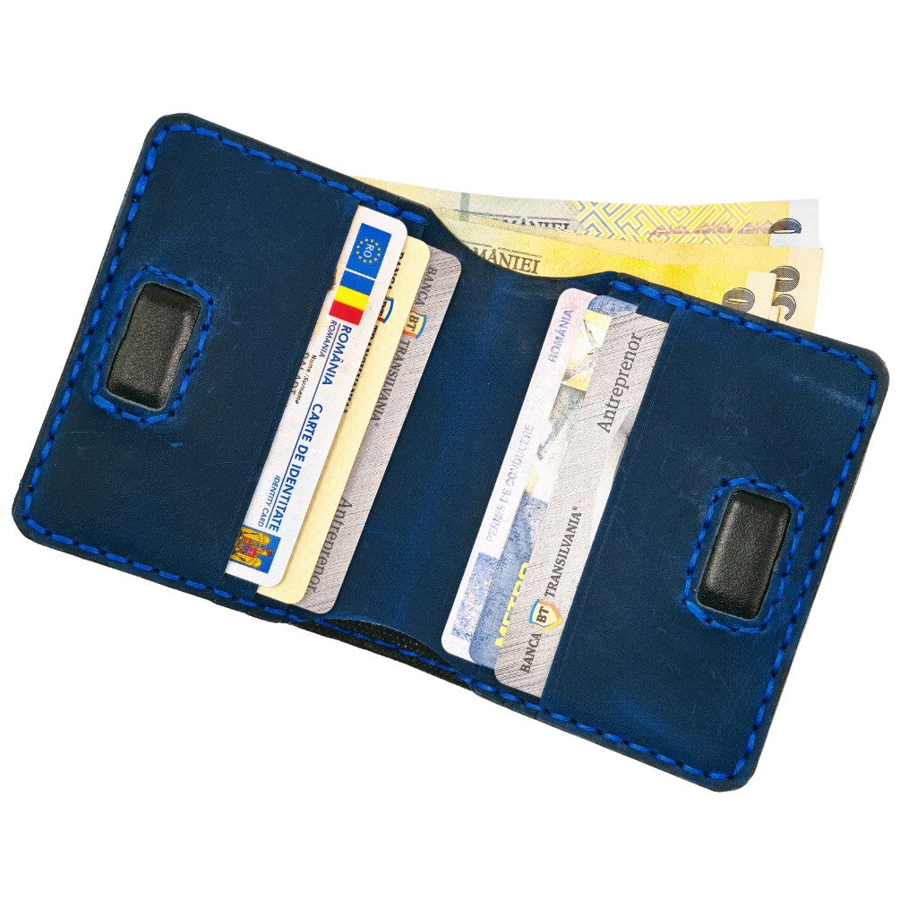 Portofel din piele naturala, personalizabil, Odin, negru cu albastru
