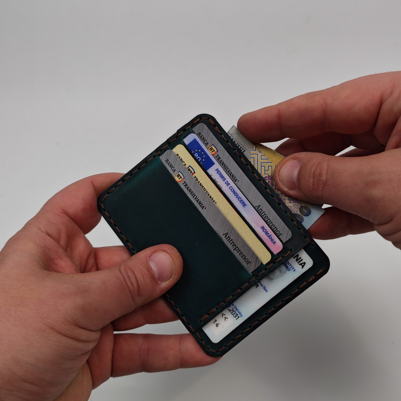 • Măiestrie Punct cu Punct: Fiind cusut manual, acest portcard elimină riscul deșirării, fiind mult mai robust decât variantele de serie.