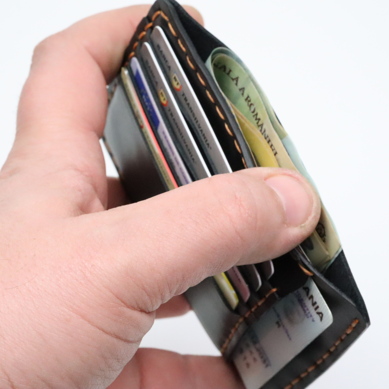 Design Ultra-Slim: Proiectat să transporte esențialul (carduri și cash) într-un mod organizat și compact.