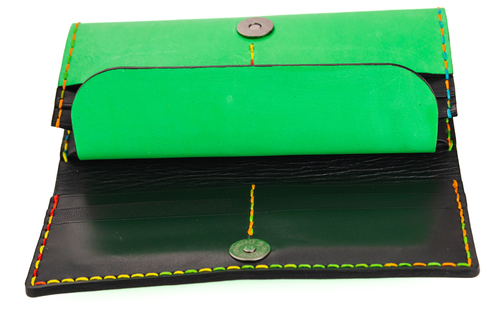 Este un portofel lucrat manual, din piele naturala de calitate, incapator, cu un design elegant si foarte incapator.