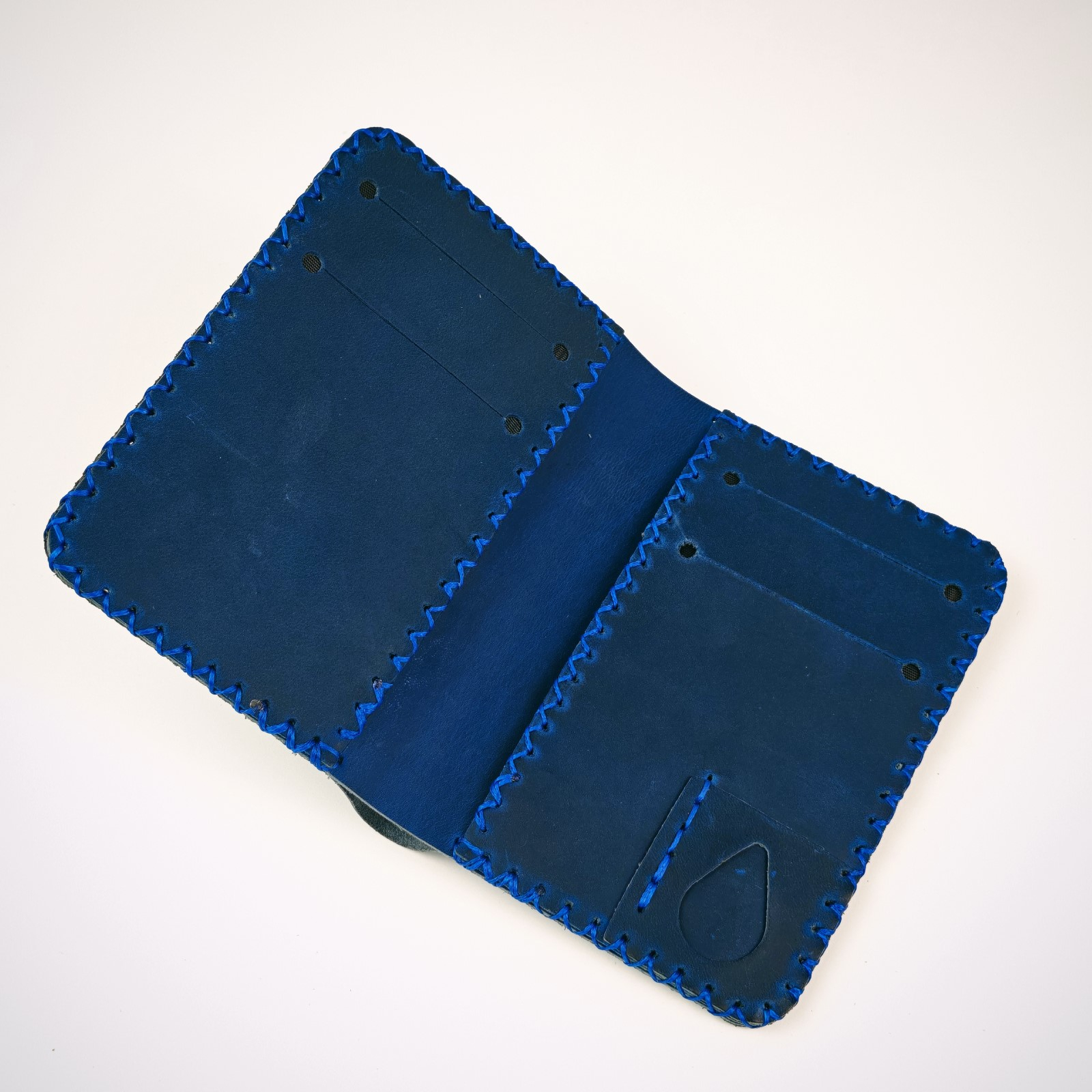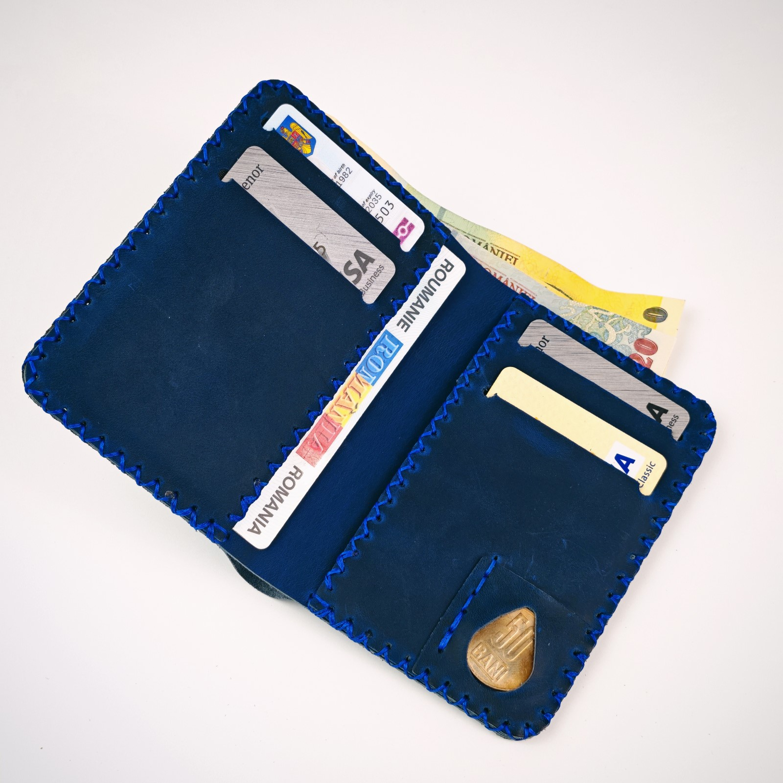 Portofel, personalizabil, din piele naturala, Jack M, Albastru nu caută atenția cu orice preț, ci o câștigă prin felul în care e