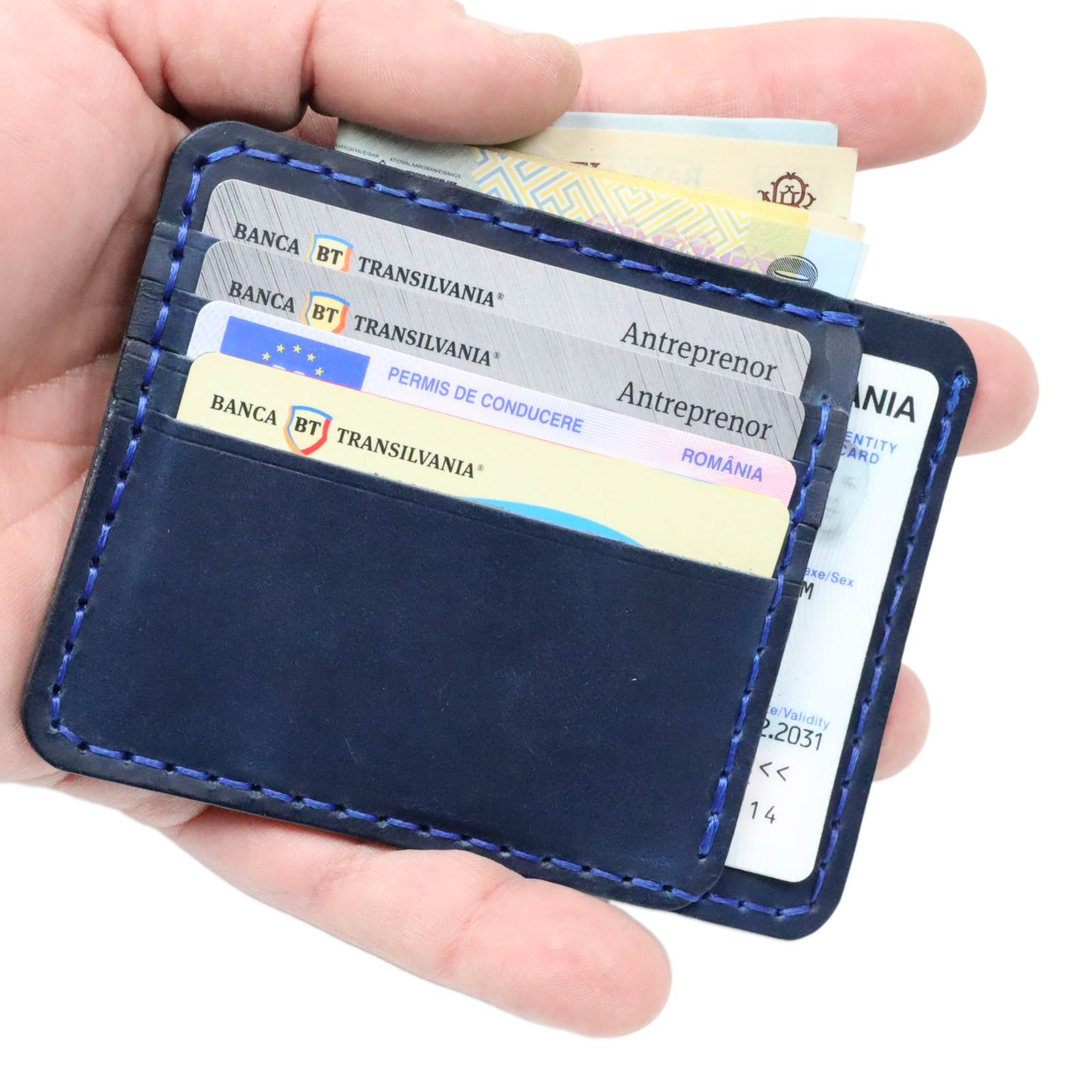 Portcard Minimalist din Piele Naturală , Duma, Albastru