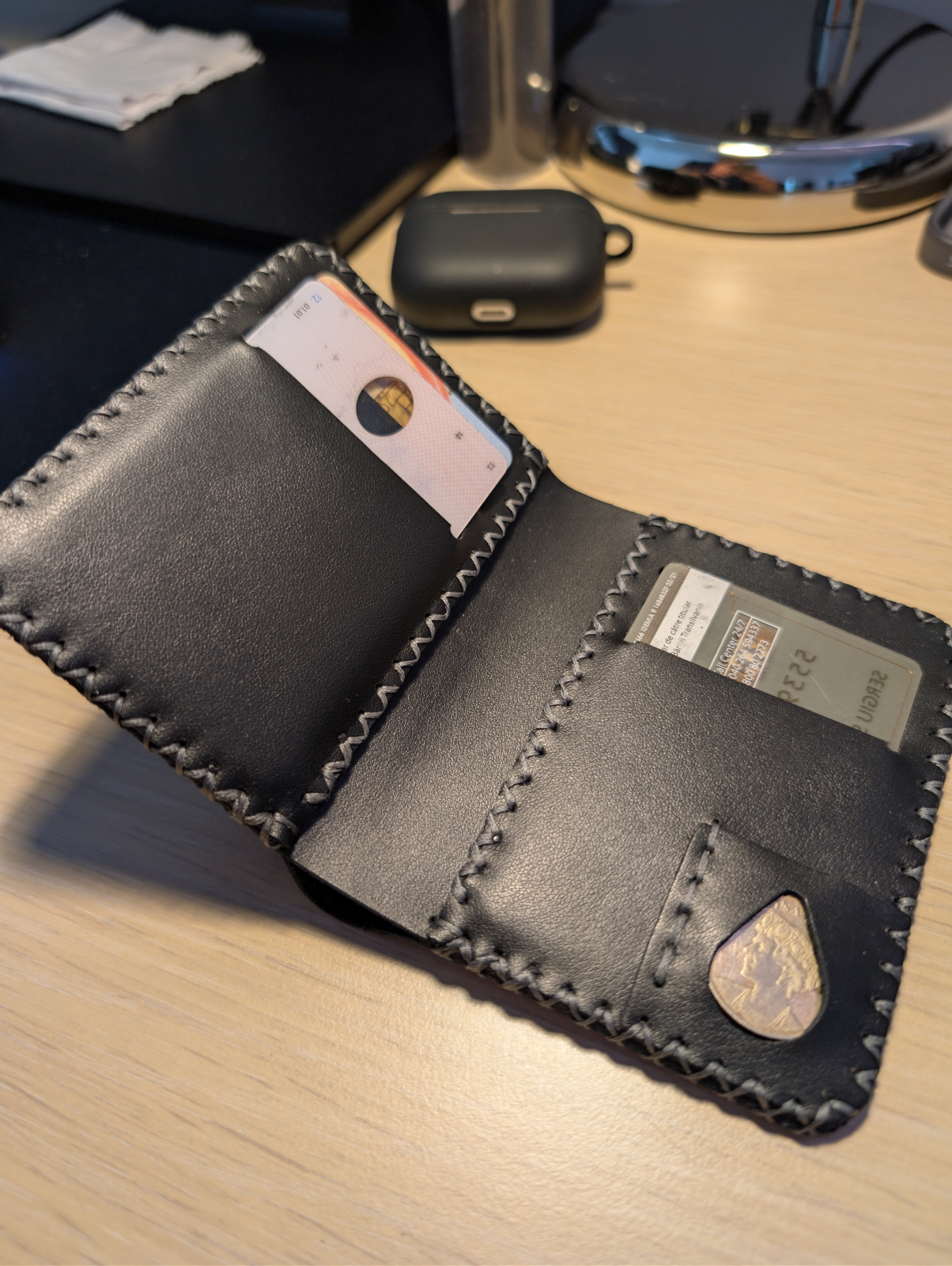 Interiorul este organizat eficient: include 6 compartimente pentru carduri, un spațiu generos pentru bancnote și un buzunar pentru monede – toate gândite să îți țină esențialele la îndemână fără volum inutil. Cusăturile lucrate manual și textura pielii naturale asigură rezistență în timp și o senzație plăcută la atingere.