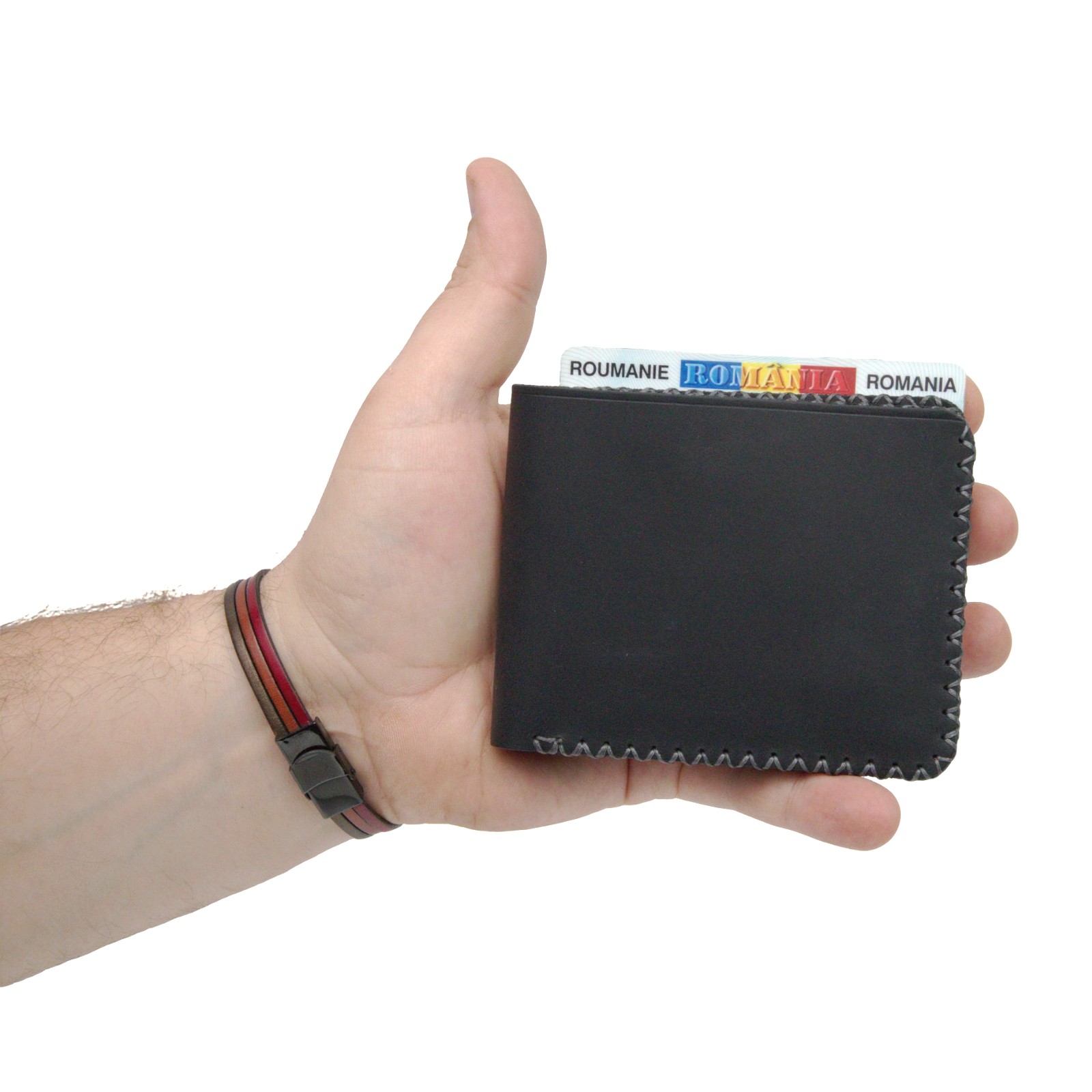 REZISTENȚĂ LA UZURĂ: Ața cerată și pielea groasă protejează structura portofelului în condiții de utilizare zilnică severă.