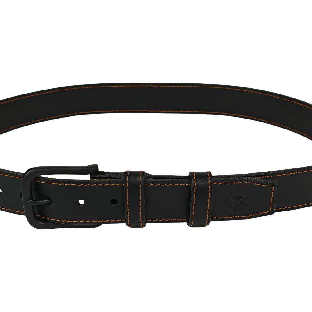 Curea piele naturala40 mm, Styx, neagra, cusatura maro cognac, catarama solida.